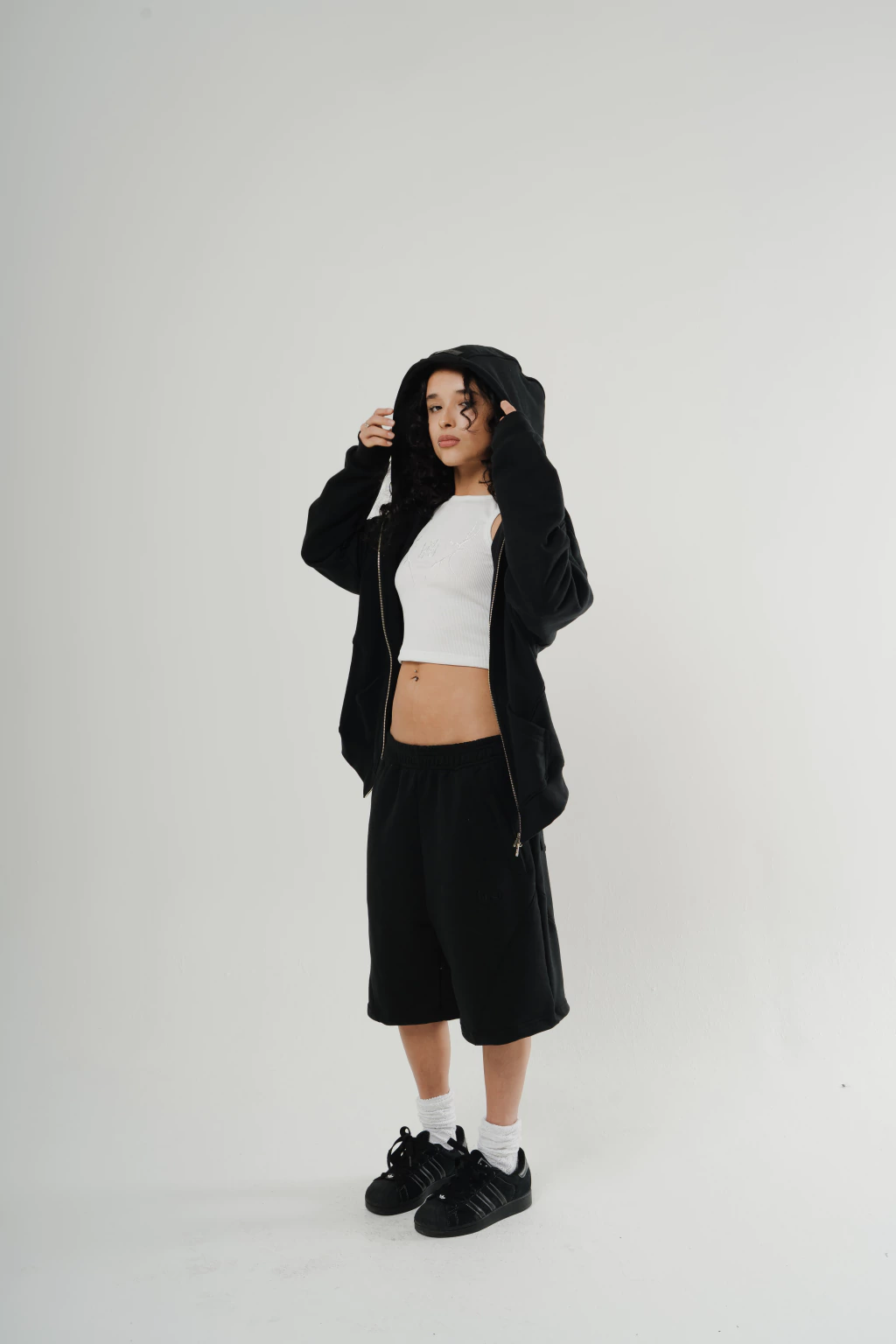 En el pecho izquierdo, un delicado bordado a tono destaca la marca con elegancia, y en la espalda, una estampa amplia de dos rosas aporta un toque artístico y distintivo. La capucha cuenta con una badana con el nombre de la marca grabado láser, que suma un detalle exclusivo y sofisticado.