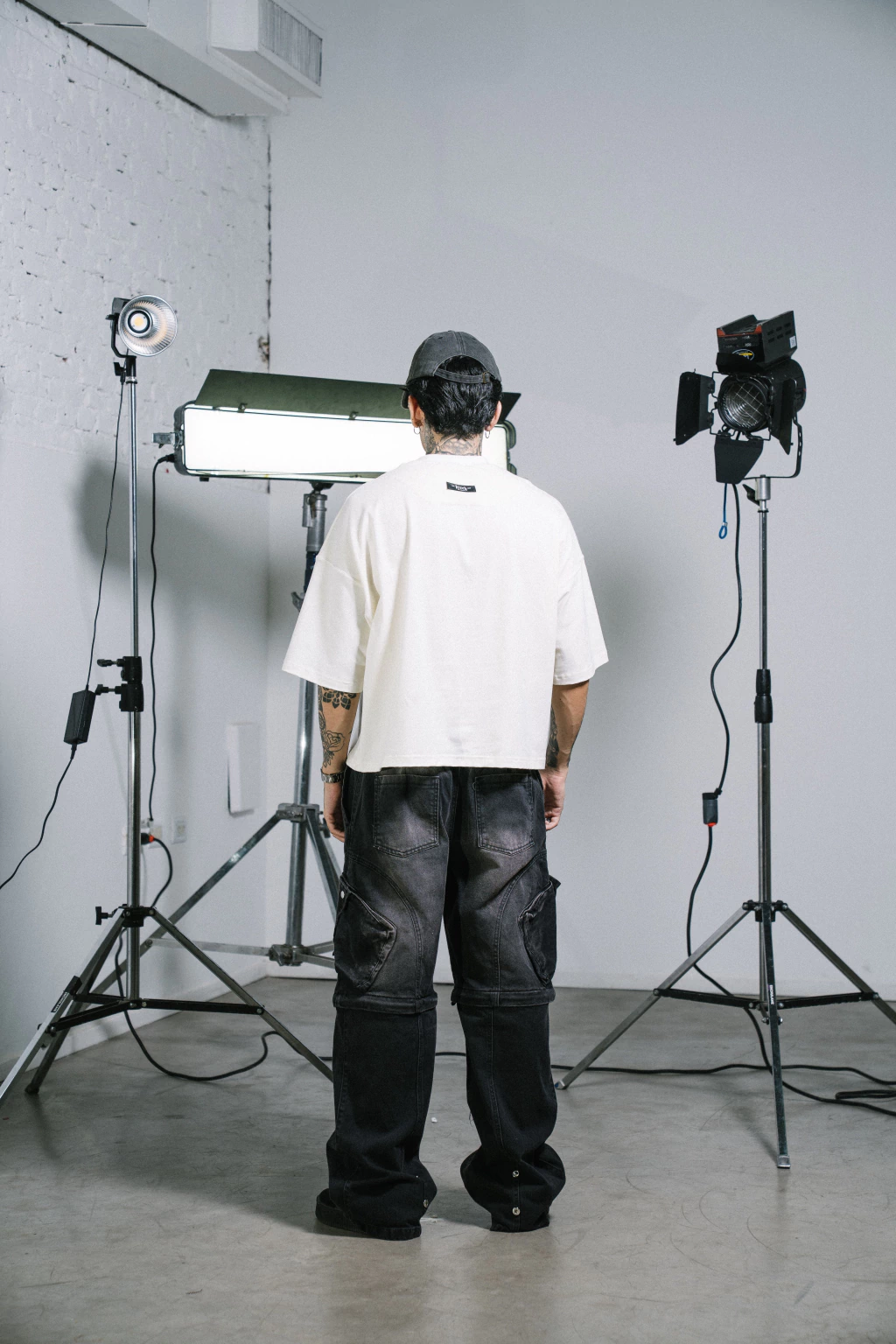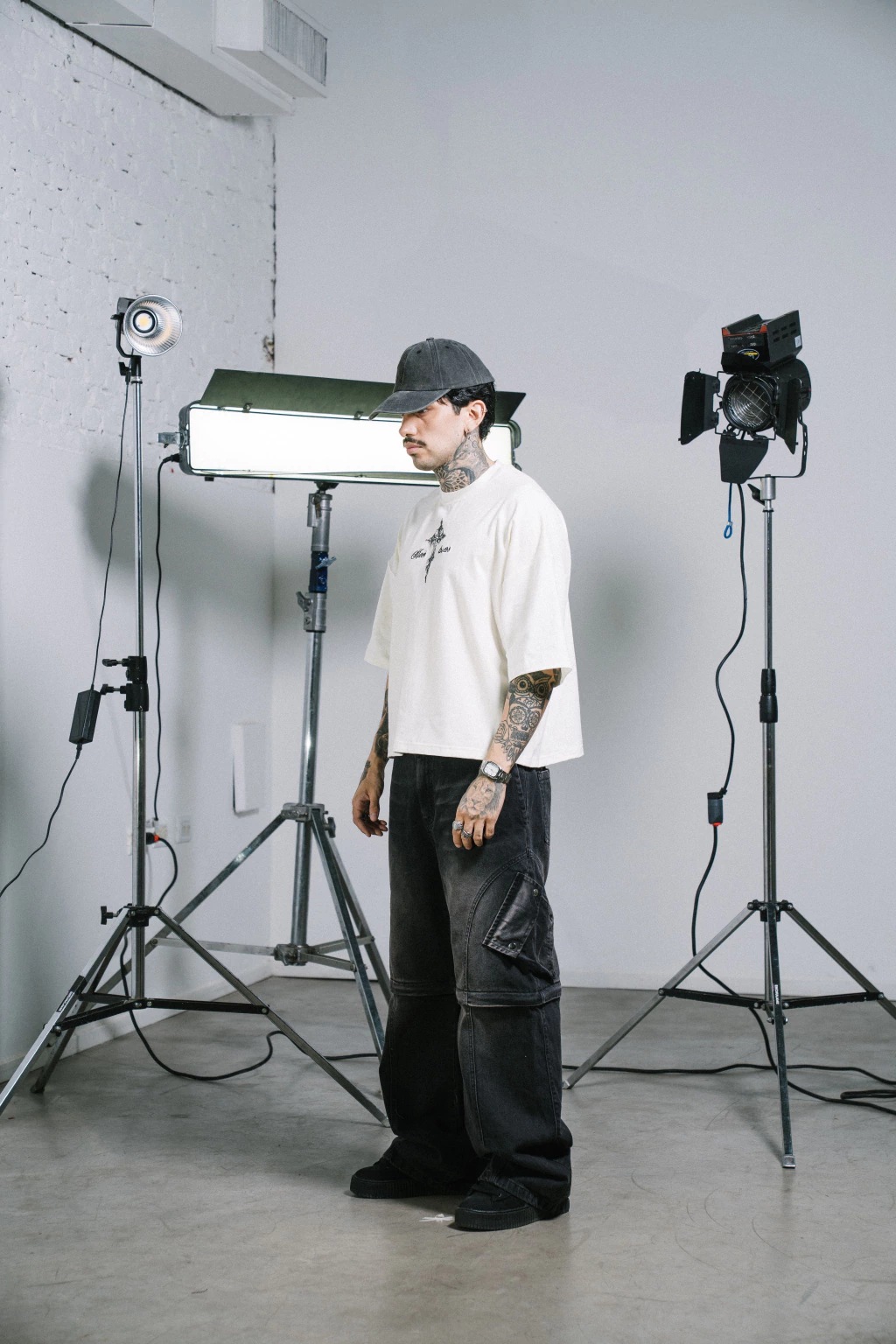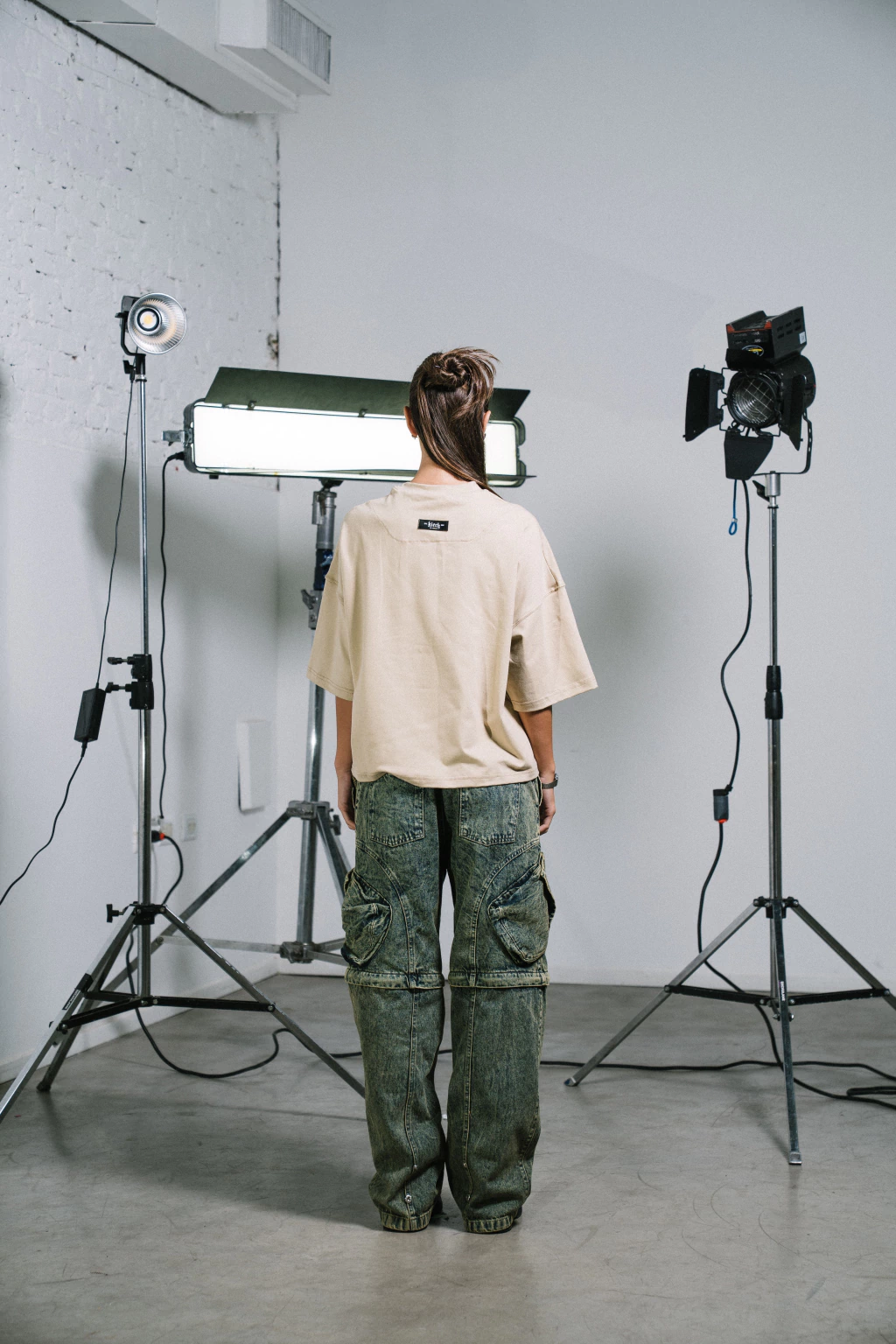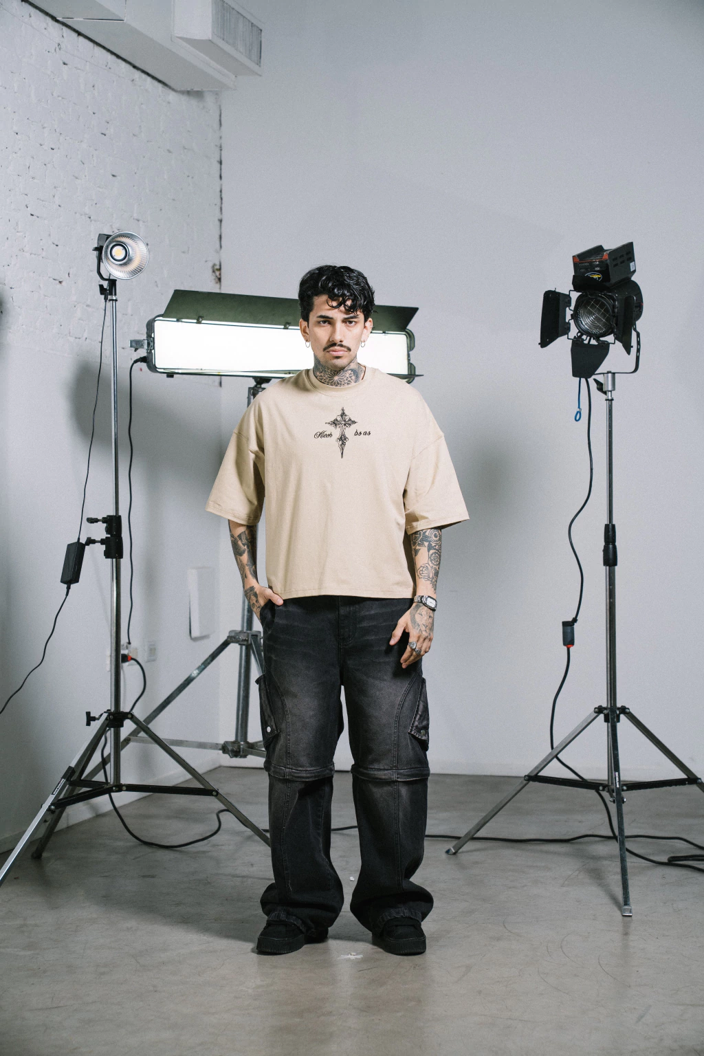 Renzo mide 1.77 cm y esta usando un talle L.