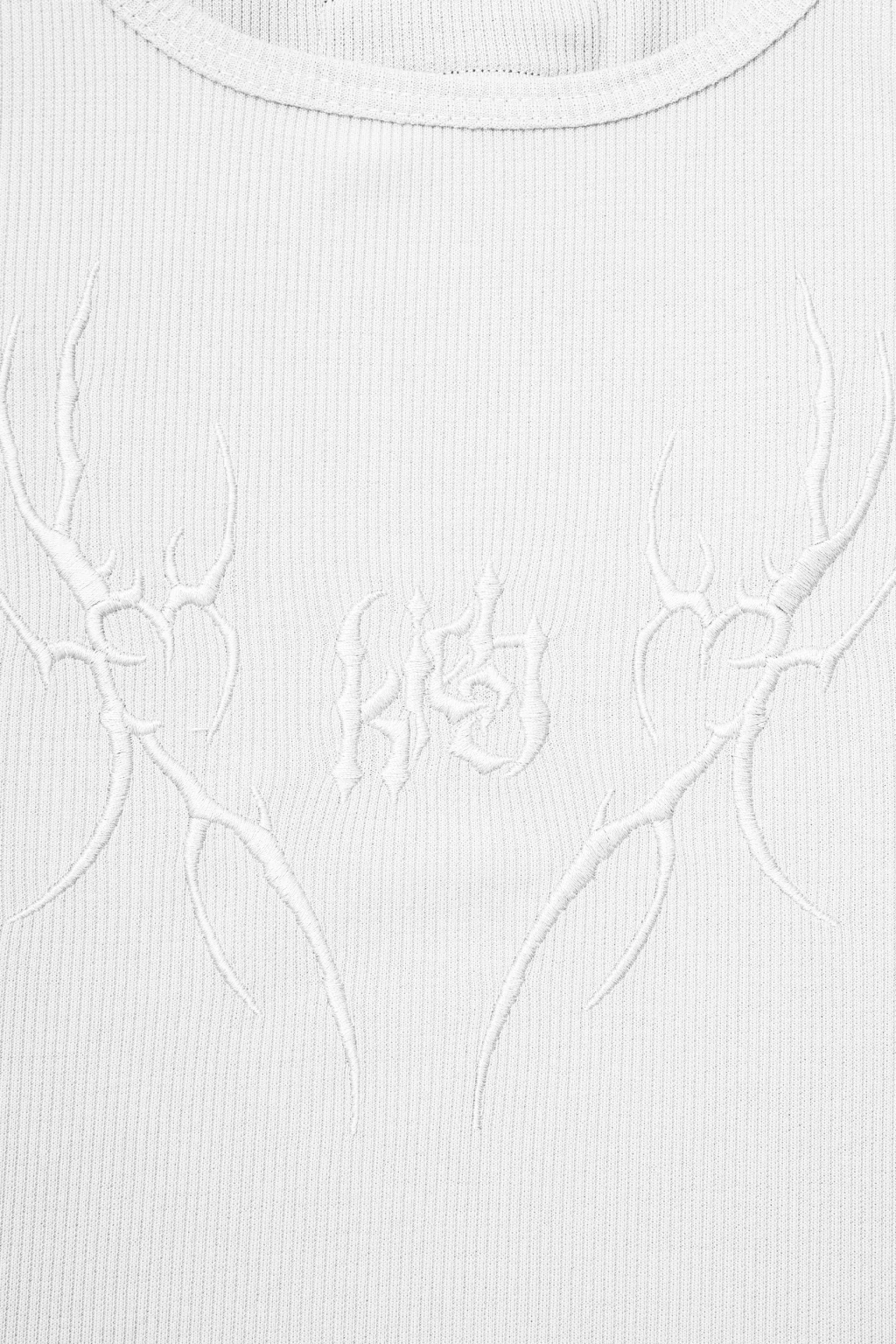 TOP MOPIUM NEGRO: un top de morley importado que destaca por su tela compacta, diseñada para realzar tu figura. Su delicado bordado de tribales y el nombre de la marca en la zona del pecho aportan un detalle único y sofisticado. Ideal para quienes buscan comodidad y estilo en una sola prenda. ¡Transformá tu look con este top imprescindible!