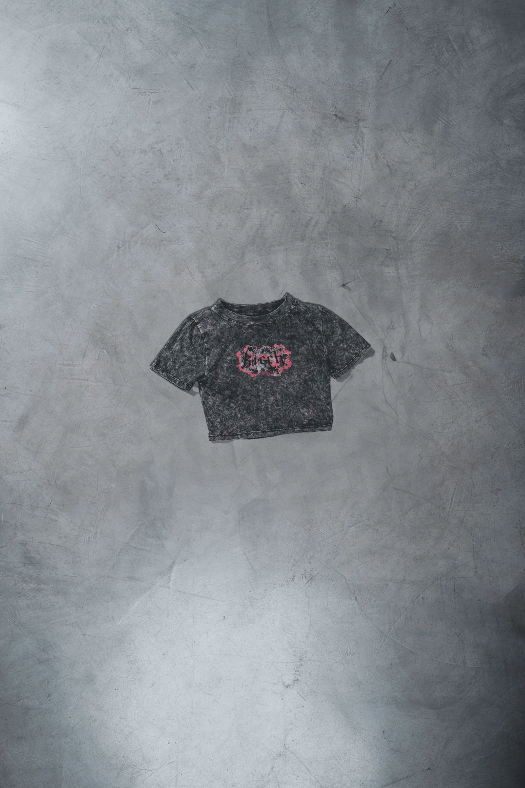 Top crop de algodòn 100% (liviano) con estampa en pecho/espalda y teñido acid wash.